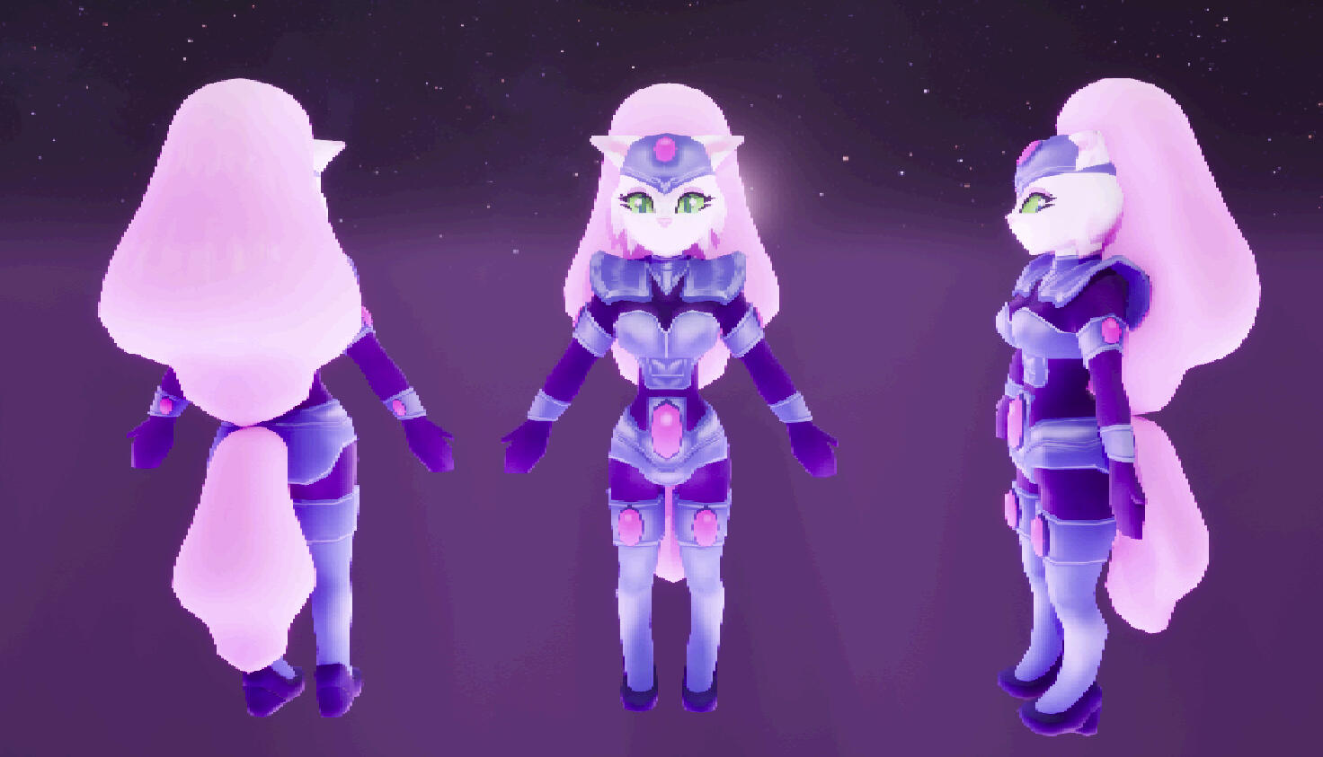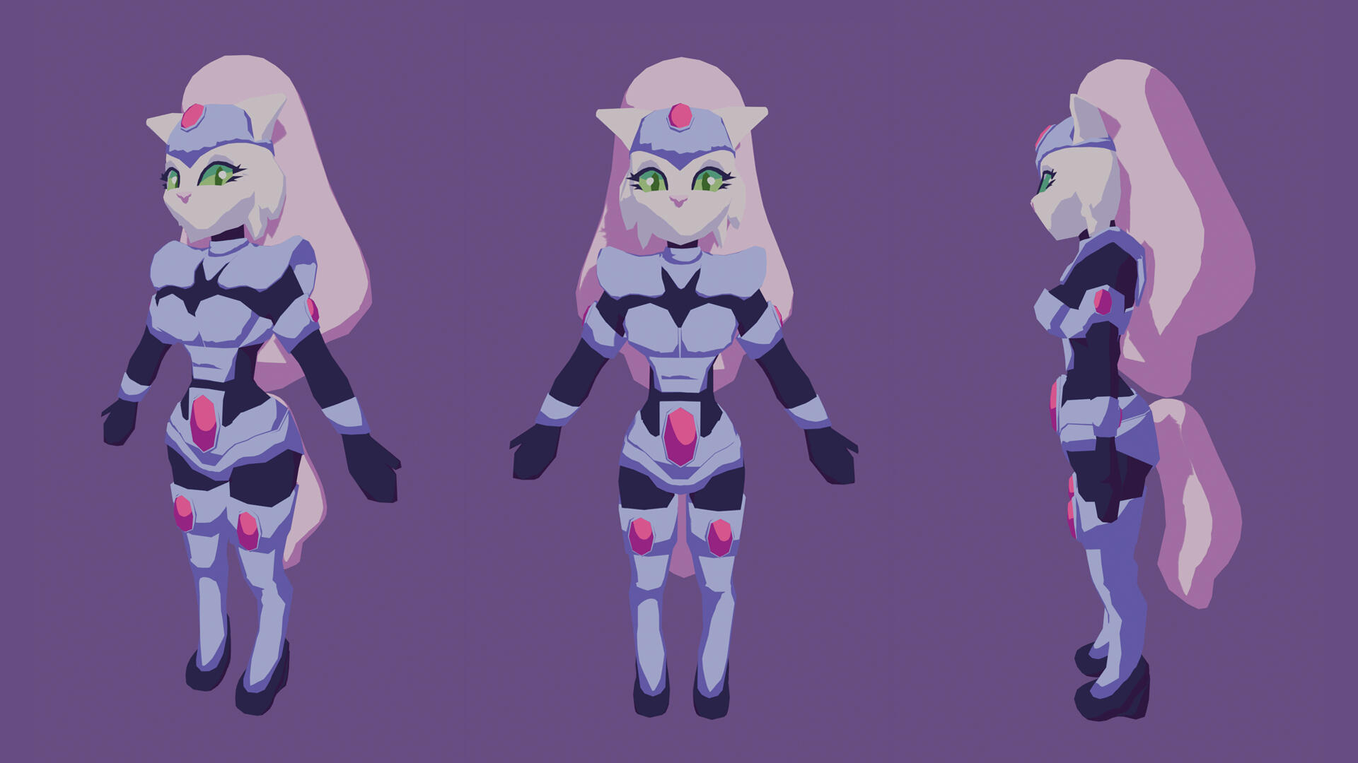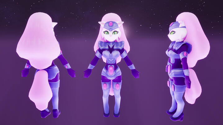 This is a character model of Jenny, created for a game project inspired by Bucky O'Hare episodes, called Heroes of the Aniverse. The game is a 3D, third person platformer adventure, with a style influenced by Nintendo 64 games, where players can control different characters across levels based on the show.The model was created in Blender with a low poly approach, focusing on clean shapes and readability. Unlike my other assets, this model was not based on a high poly workflow, as it was designed specifically for Animation and Performance.Particular attention was given to proportions, topology and deformation to ensure the character would work well when animated.The textures were created in Substance Painter 3D by a teammate, helping bring the character to life while staying consistent with the overall visual style.The final model was made with Unreal Engine in mind and designed to work with a pixelization post process, reinforcing the retro aesthetic.This project helped me develop my character modeling skills while focusing on optimization and animation-ready topology.