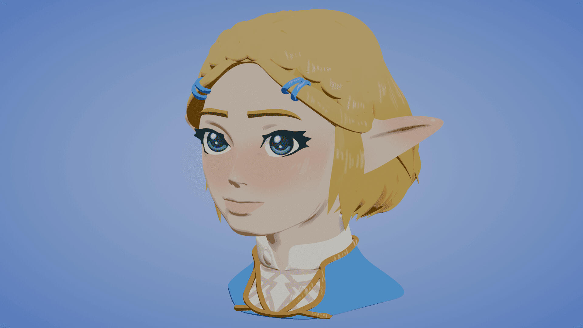This is a sculpted bust of Zelda, created as a personal project to explore character sculpting and stylized rendering.The model was sculpted in Blender, focusing on facial features, proportions, and overall form. Unlike my other work, this piece was not optimized for game use, as the goal was to focus on texture and presentation rather than performance.The textures were created using Ucupaint in Blender, and the final look was developed using cell-shading to achieve a stylized appearance.This project was an opportunity to showcase my sculpting skills and my ability to work with non-realistic rendering styles.